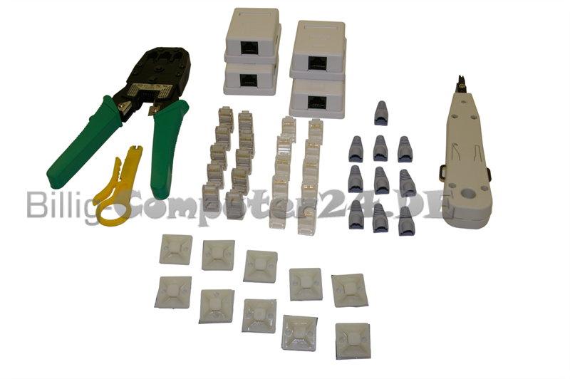 Crimpzange RJ45,20 Stecker,4 Netzwerkdose,10 Klebesockel Kabelhalter,10 Tülle,1 LSA-Anlegewerkzeug